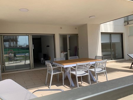 Het gelijkvloers appartement is voorzien voor 8 personen, heeft 3 slaapkamers, 2 badkamers en is voorzien van alle luxe. Er is een gemeenschappelijke tuin met 3 zwembaden, waarvan eentje verwarmd tijjdens de winter, een kinderzwembad en jacuzzi. De woonst is een meter hoger gelegen dan de tuin, zodat je absolute privacy hebt en toch vlakbij het zwembad zit waar je eventueel kindjes in het oog kan houden. Er is een terras van 50m2 met een prachtig uitzicht op één van de zwembaden en de tuin.